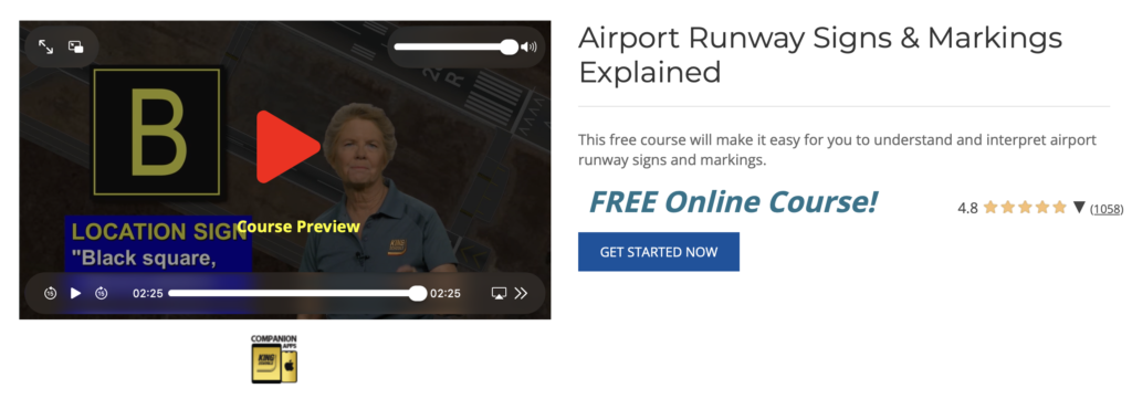 There is a free online course offered by Kings School if you need to learn or brush up on your airport runway signs and markings. Click the image or link below to sign up for this free course!!