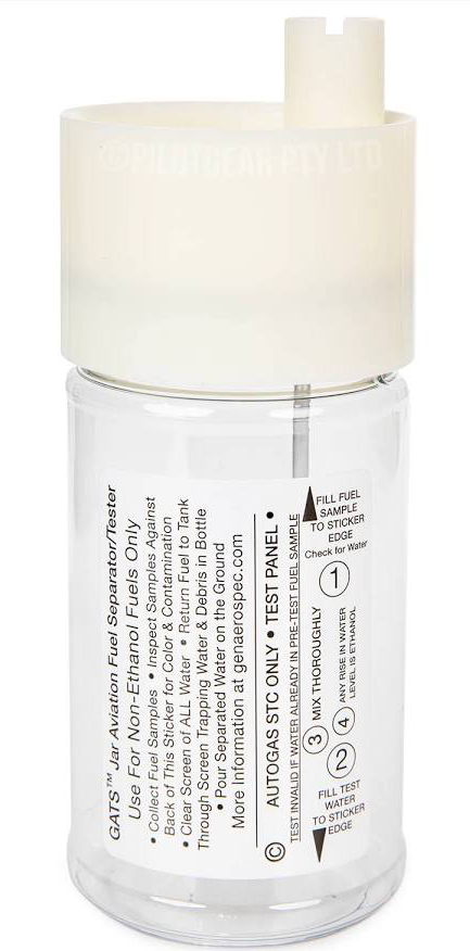 • Contaminant Separation: When coated with fuel (AVGAS), the screen allows the fuel to passthrough while trapping water and solid debris inside the jar. Separates water visibly at the bottom