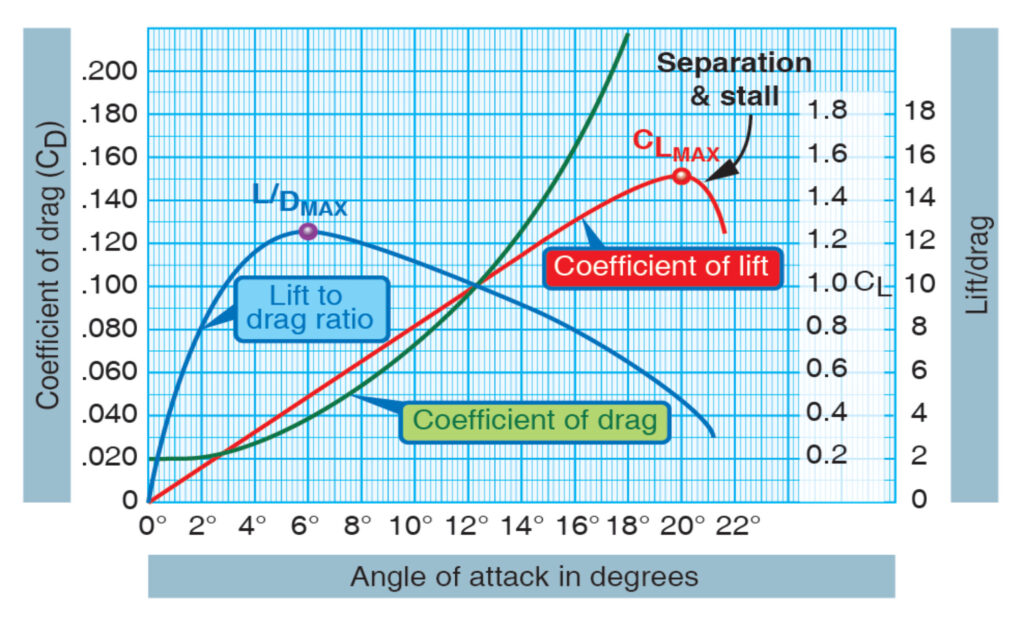 It is also important to note that an airplane flying below L/DMAX, exhibits a characteristic known as “speed instability” and the airspeed will continue to decay without appropriate pilot action. For example, if the airplane is disturbed by turbulence and the airspeed decreases, the airspeed may continue to decrease without the appropriate pilot action of reducing the Angle of Attack or adding power.